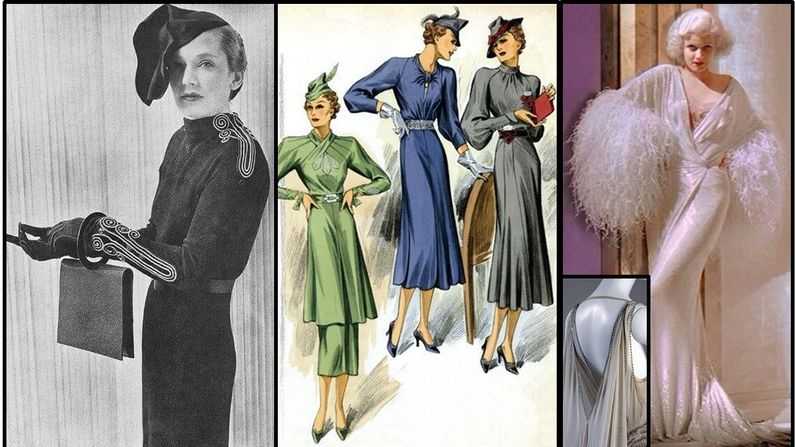 Nos anos 30, a figura feminina perde o toque masculino, que é substituído por um ar exótico, inspirado pelo movimento surrealista. O outro lado da moeda, é o clima glamouroso e sedutor provocado pelo impacto dos filmes de Holywood, cujas divas passam a lançar tendências…como resultado geral, uma silhueta que marca as curvas naturais do corpo ou se afunila, enlarguescendo os ombros com ombreiras, chapéus exóticos, sapatos estáveis, sedutores vestidos brancos, grandes decotes nas costas, peles, plumas e cabelos super loiros e ondulados.